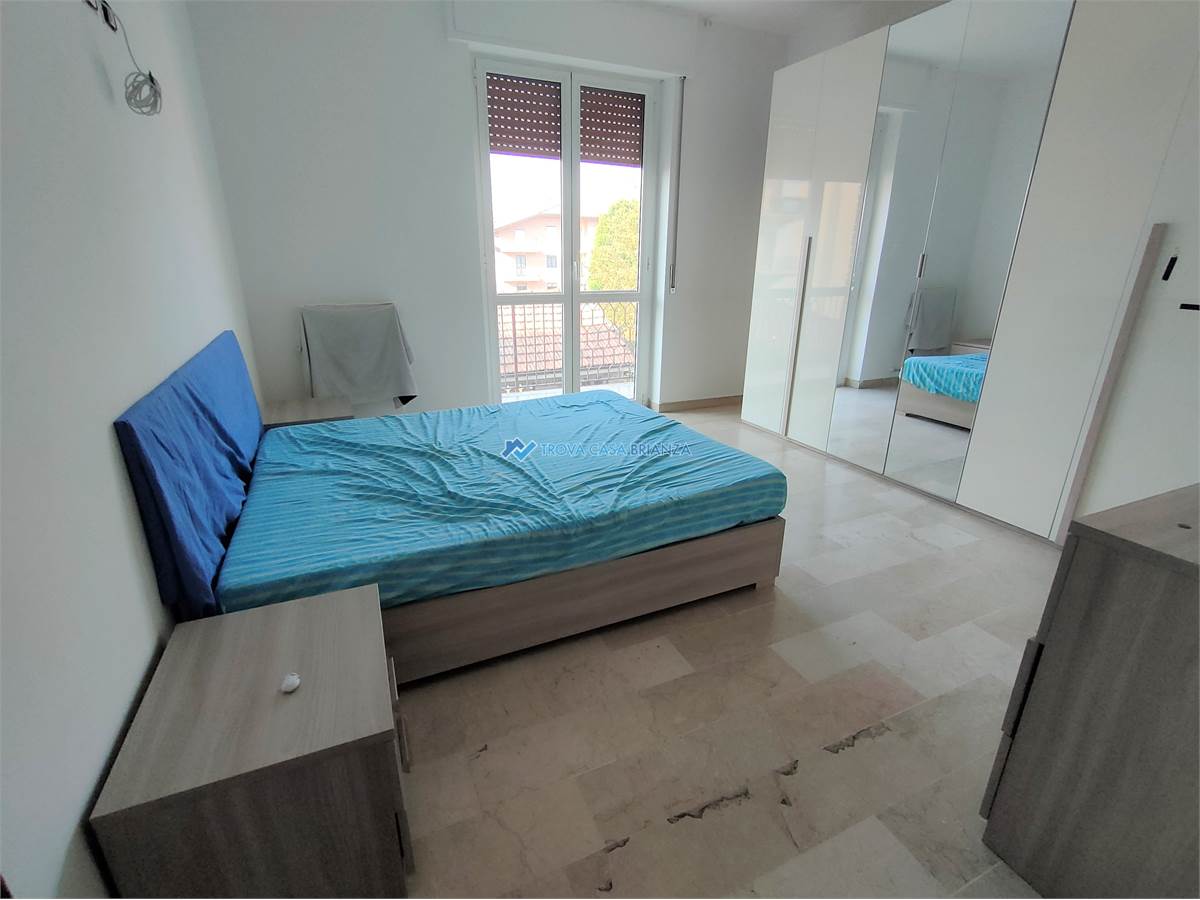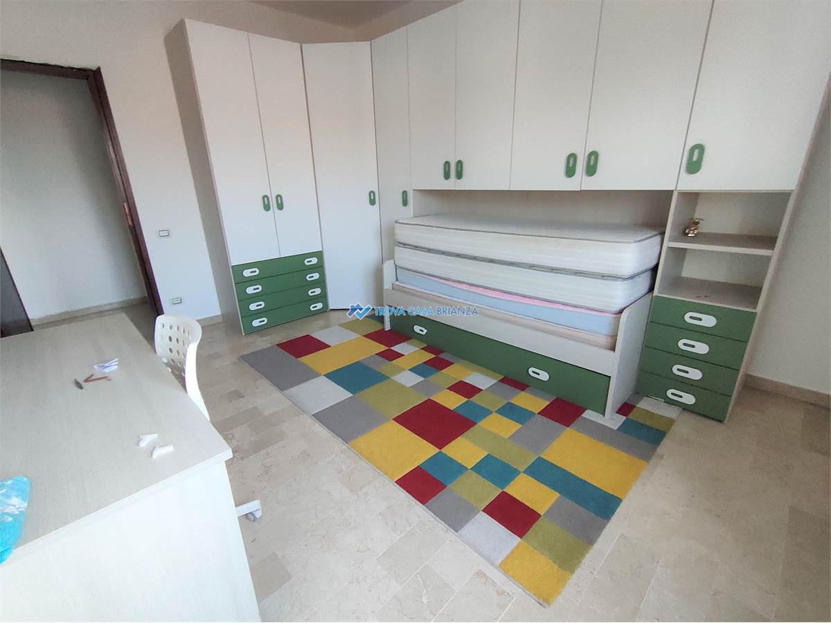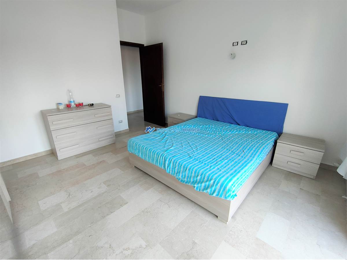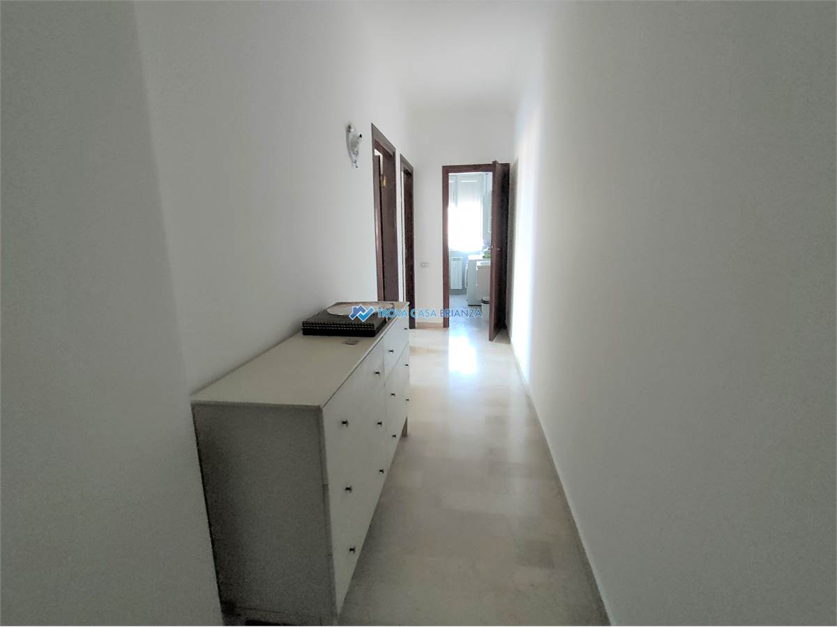 AD USO INVESTIMENTO. IMMOBILE LOCATO AL CANONE ANNUO DI EURO 7.800,00. SCADENZA CONTRATTO FINE SETTEMBRE 2027.In condominio ben tenuto costruito negli anni 70 posizionato di fronte alle scuole medie, comodo con il centro del paese a meno di 1 km dall'accesso alla strada statale 36.Appartamento posto al SECONDO PIANO SERVITO DALL'ASCENSORE composto da: atrio di ingresso, cucina abitabile, ampio soggiorno, affacciati entrambi su un balcone ESPOSTO A SUD-OVEST, corridoio notte con 2 camere da letto matrimoniali di cui una con secondo balcone, e bagno con vasca e attacco lavatrice.Buone condizioni interne, infissi in PVC con doppi vetri, bagno rifatto in ottime condizioni, porta ingresso blindata, pavimenti in MARMO BIANCO originario in buone condizioni, pavimento cucina in GRES PORCELLANATO, caldaia acqua calda nuova esterna sul balcone. Esternamente sono stato rifatti i balconi compreso isolamento e pavimentazione nel 2024 e installati i videocitofoni nuovi.Ampio box singolo al piano terra del condominio, al prezzo di euro 16.000.Riscaldamento centralizzato con caldaia condominiale sostituita recentemente con termovalvole per la gestione nelle singole unita'.Spese condominiale di euro 1.200 compresa la quota fissa del riscaldamento, oltre la quota a consumo.