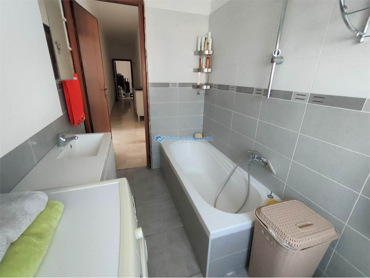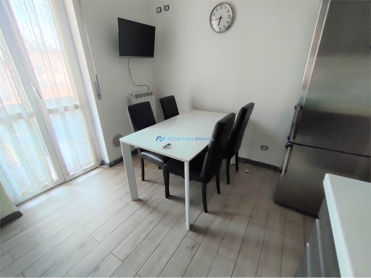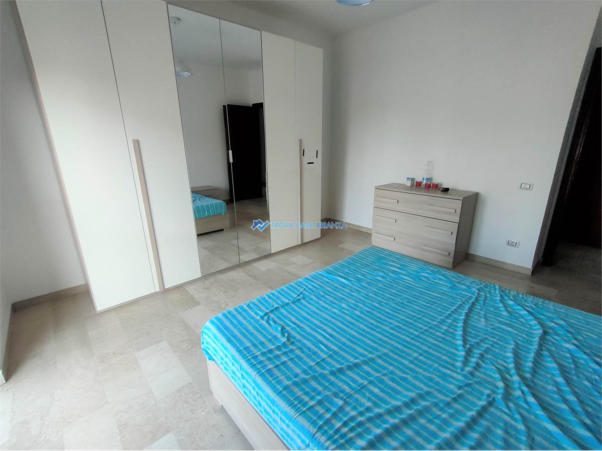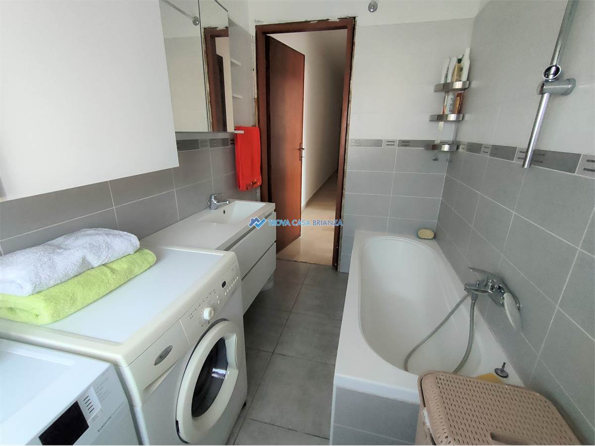 AD USO INVESTIMENTO. IMMOBILE LOCATO AL CANONE ANNUO DI EURO 7.800,00. SCADENZA CONTRATTO FINE SETTEMBRE 2027.In condominio ben tenuto costruito negli anni 70 posizionato di fronte alle scuole medie, comodo con il centro del paese a meno di 1 km dall'accesso alla strada statale 36.Appartamento posto al SECONDO PIANO SERVITO DALL'ASCENSORE composto da: atrio di ingresso, cucina abitabile, ampio soggiorno, affacciati entrambi su un balcone ESPOSTO A SUD-OVEST, corridoio notte con 2 camere da letto matrimoniali di cui una con secondo balcone, e bagno con vasca e attacco lavatrice.Buone condizioni interne, infissi in PVC con doppi vetri, bagno rifatto in ottime condizioni, porta ingresso blindata, pavimenti in MARMO BIANCO originario in buone condizioni, pavimento cucina in GRES PORCELLANATO, caldaia acqua calda nuova esterna sul balcone. Esternamente sono stato rifatti i balconi compreso isolamento e pavimentazione nel 2024 e installati i videocitofoni nuovi.Ampio box singolo al piano terra del condominio, al prezzo di euro 16.000.Riscaldamento centralizzato con caldaia condominiale sostituita recentemente con termovalvole per la gestione nelle singole unita'.Spese condominiale di euro 1.200 compresa la quota fissa del riscaldamento, oltre la quota a consumo.